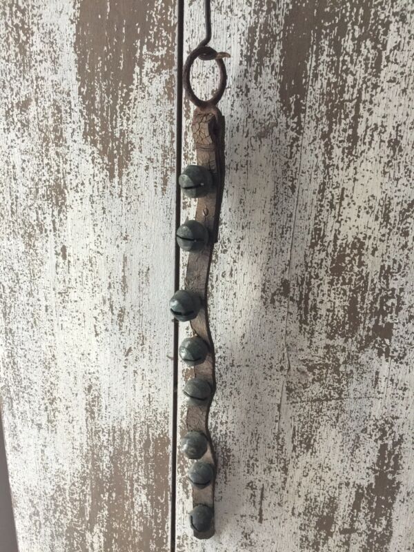 Title (ebay affiliate link): Strand 8 Old Antique Brass Sleigh Bells Leather Strap Patina Worn AAFA