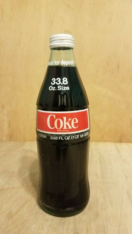 Title (ebay affiliate link): Coca Cola - COKE 1 Liter 33.8 oz Unopened Sealed Vintage Glass Bottle