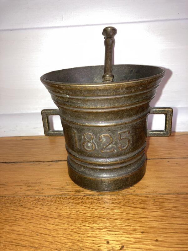 Title (ebay affiliate link): Vintage BRONZE BRASS Pharmacy MORTAR & PESTLE 1825 2 Side Handles
