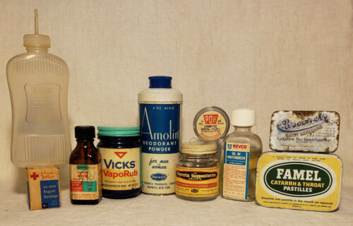 Title (ebay affiliate link): Vintage Medical Apothecary Bottles and Tins Lot of 10