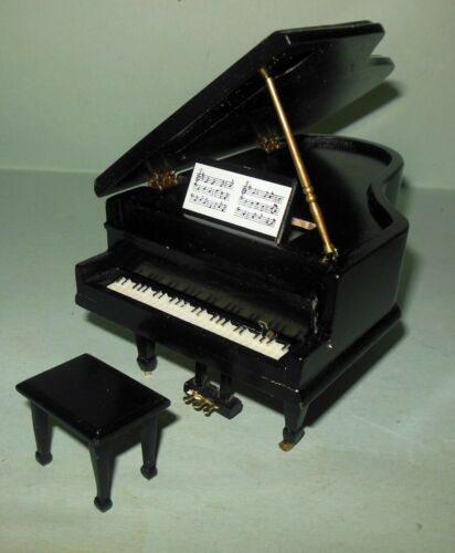 Title (ebay affiliate link): BLACK BABY GRAND PIANO MUSICAL WITH BENCH DOLLHOUSE FURNITURE MINIATURES #1