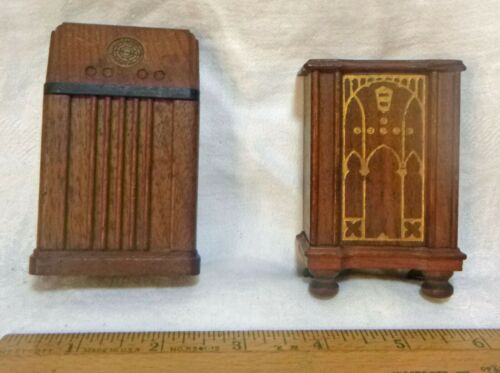 2 Vintage Wooden Walnut Strombecker Floor Radios 1930s Dollhouse Furniture
