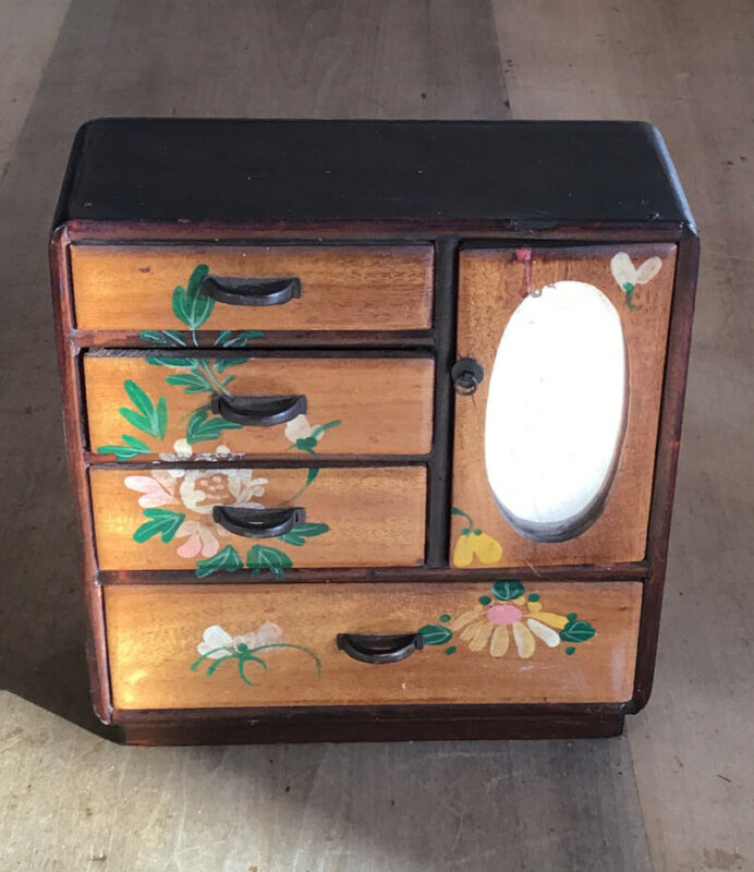 Title (ebay affiliate link): A Lovely Antique Small Wooden Hand Painted Japanese Cabinet. 15cm Tall.