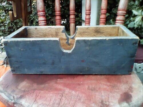 Early Primitive Wooden Box Old Blue Paint