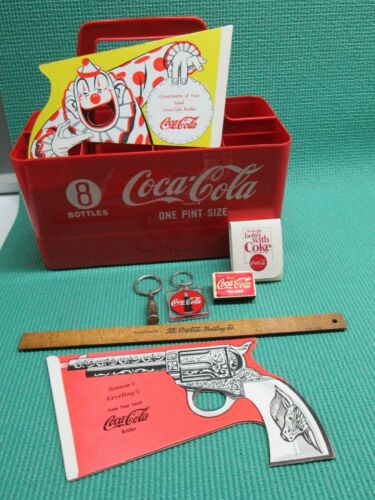 Title (ebay affiliate link): 8 VTG COCA COLA ITEMS 1954 PAPER POPPERS,8 BOTTLE CARRIER,KEY CHAINS ETC.