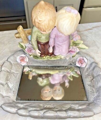 Title (ebay affiliate link): VINTAGE Norleans Capodimonte style Boy & Girl Reflection Mirror Trinket Tray