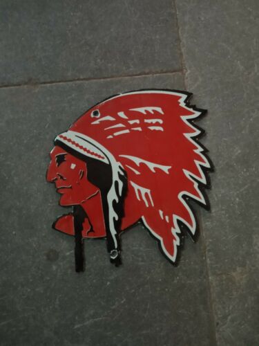 Porcelain Red Indian Enamel Sign SIZE 6" X 5.5" Inches