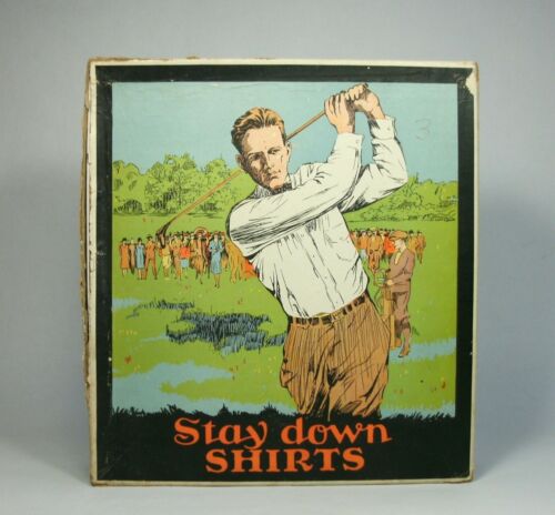Title (ebay affiliate link): w Vtg Adv GLEN STAY DOWN SHIRT BOX w/GOLFING GOLFER GOLF GRAPHICS Empty 2 Pc Box
