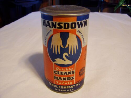 Title (ebay affiliate link): VINTAGE NOS HANSDOWN HAND CLEANER ADVERTISING TIN CENOL CO HANDS & SWAN GRAPHICS