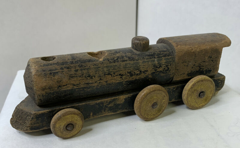 Vintage Train Engine Wood Hand Crafted Folk Art Toy