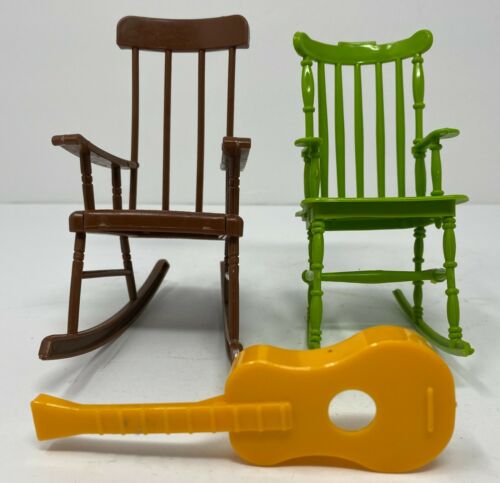 Vintage 1973 Mattel Sunshine Family Rocking Chairs Guitar For Doll Furniture