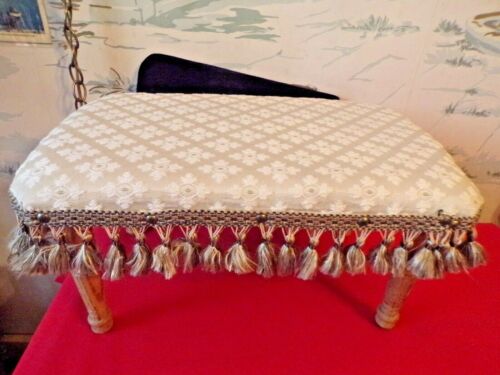 Title (ebay affiliate link): Vintage Cushioned footstool with wooden legs and fringed edges