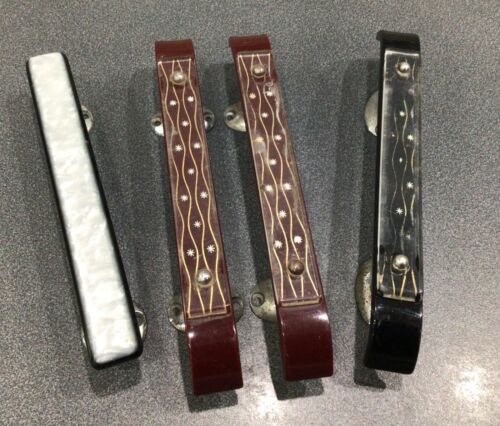 Title (ebay affiliate link): 4 20thC vintage retro atomic age 1950s Bakelite plastic door furniture handles.