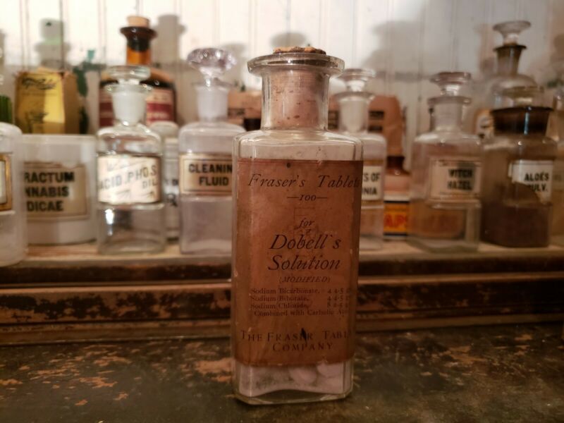 Title (ebay affiliate link): FRASER''S TABLETS FOR DOBELL''S SOLUTION, CORK, EMBOSSED BOTTLE WITH CONTENTS