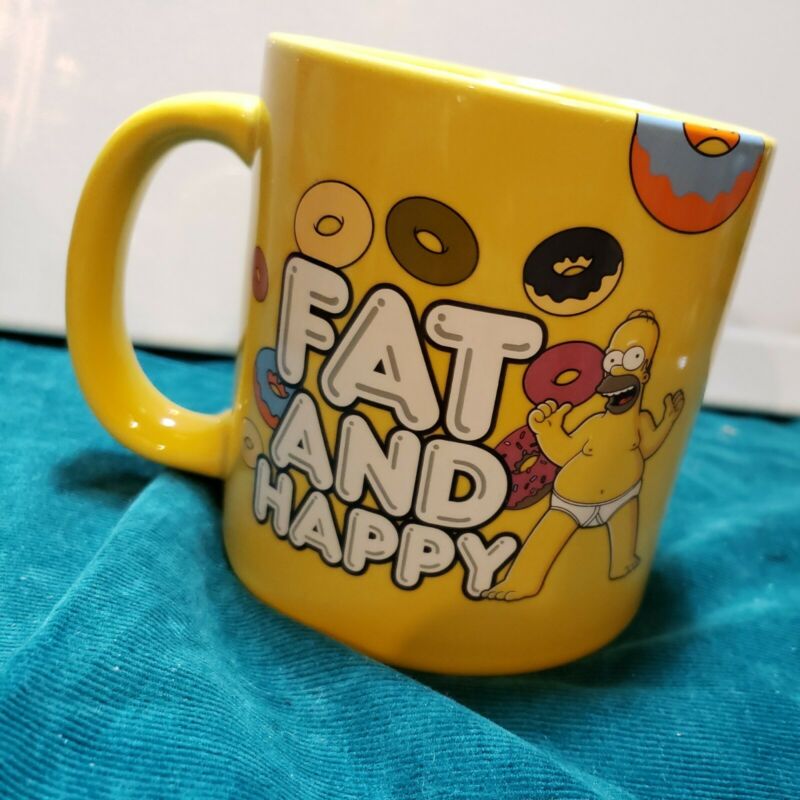 Title (ebay affiliate link): Vandor 67065 The Simpsons "Fat and Happy" 20 oz Ceramic Mug, Yellow and White