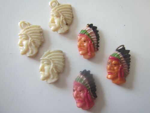 VTG LOT OF 6 NATIVE AMERICAN HEAD CRACKER JACK TOYS, PREMIUMS, CHARMS, PRIZES