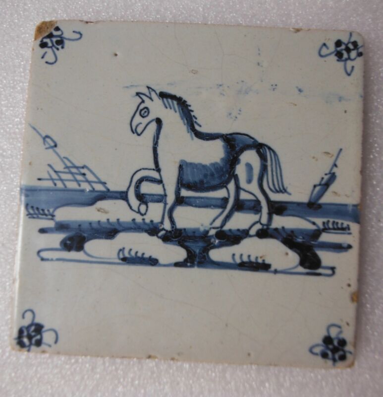 vintage Tile trivit Plaque Horse blue white Farmhouse