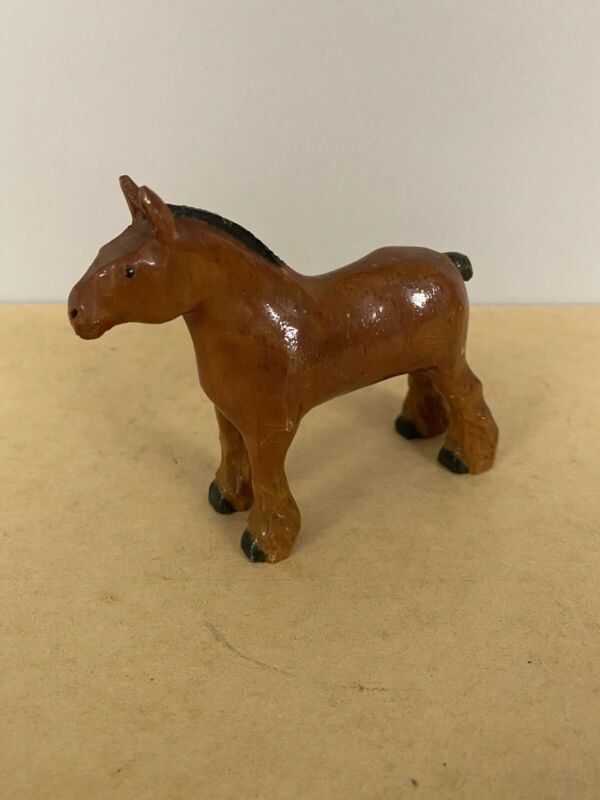 VINTAGE HAND CARVED WOOD FOLK ART HORSE 4.5 X 3.5 Inches Lacquered