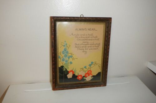 VINTAGE WALL ART ANTIQUE POEM ALWAYS NEAR FLORAL CIRCA 20''S -40''S EARLY CENTURY