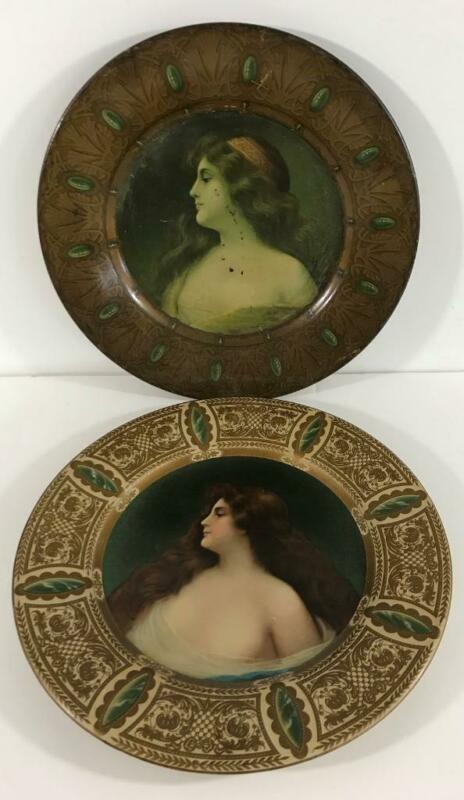 (2) Antique Tin Plates with Lithographs of Beautiful Women