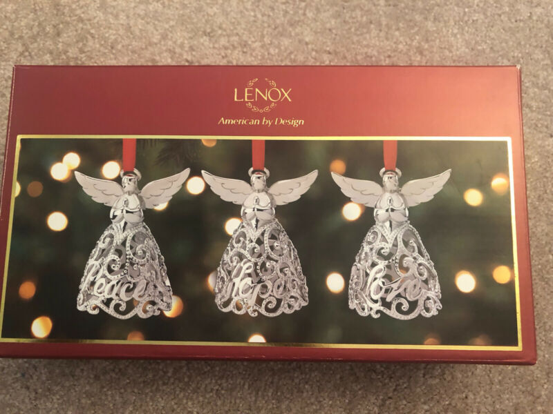 Title (ebay affiliate link): Lenox - Set Of 3 Metal Angel Christmas Ornaments - Peace Hope Love NIB