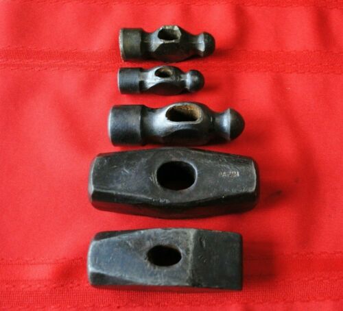 Five Vintage Blacksmith Hammer Heads, Heller, Van Guard, Old Tools