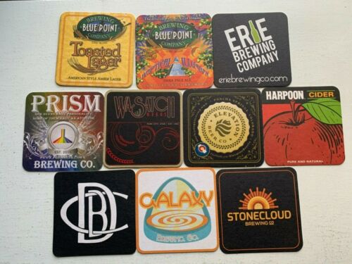 10 CRAFT BEER COASTERS-PRISM,ELEVATION,STONECLOUD,GALAXY,ERIE,WASATCH,BLUE POINT
