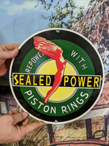 OLD VINTAGE 1940''S PISTON RINGS GASOLINE MOTOR OIL PORCELAIN GAS PUMP FUEL SIGN