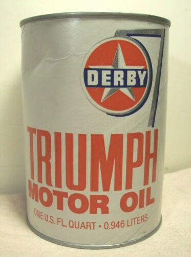 Title (ebay affiliate link): vintage~DERBY~TRIUMPH MOTOR OIL~UNOPENED~ONE QUART ADVERTISING CAN~GARAGE ART~