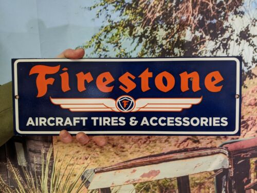 OLD VINTAGE HEAVY FIRESTONE AIRCRAFT TIRES PORCELAIN ENAMEL METAL TIRE SIGN