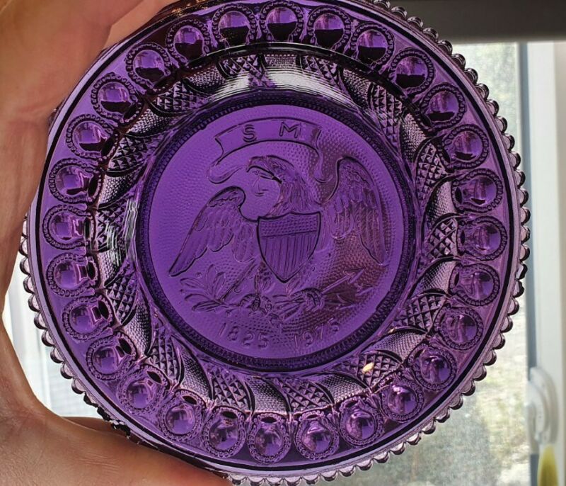 Title (ebay affiliate link): Pairpoint Glass Company Purple Bald Eagle Boston & Sandwich Museum Plate