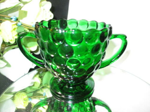 BUBBLE HOCKING DEPRESSION GLASS FOREST GREEN CHRISTMAS GREEN SUGAR BOWL