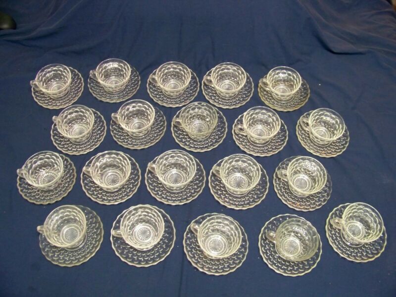 Clear Bubble Depression Glass 20 Cups and 21 Saucers Sets Anchor Hocking