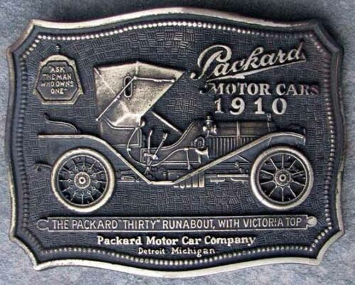 NOS BRASS 1910 PACKARD ADVERTISING BELT BUCKLE PRISTINE L@@K #G644