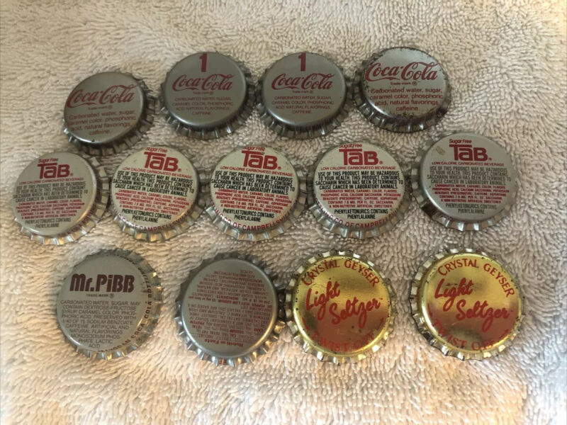 Title (ebay affiliate link): 13 different COCA COLA TAB And 1 MR PIBB And More unused soda bottle caps