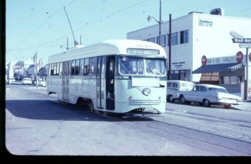 LOS ANGELES MTA ORIGINAL SLIDE OF PCC CAR 3040 SIGNED S CENTRAL & MANCHESTER