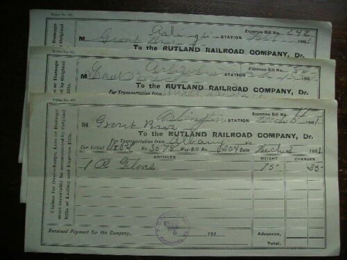 Title (ebay affiliate link): RUTLAND RAILROAD ARLINGTON STATION THREE 1901 FREIGHT EXPENSE BILLS