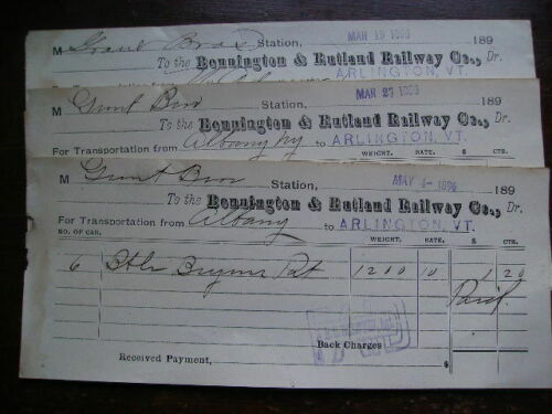 Title (ebay affiliate link): BENNINGTON & RUTLAND RAILWAY ARLINGTON VT THREE 1896 FREIGHT BILL RECEIPTS