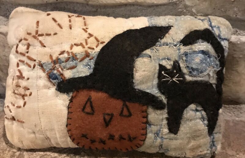 Title (ebay affiliate link): Primitive *Pumpkin Head* Black Cat Shelf Pillow-Made From Vintage Quilt