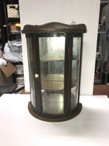 OLD! Vintage Curio Wood Glass Door Table Top Wall Hanging Display Curio Cabinet