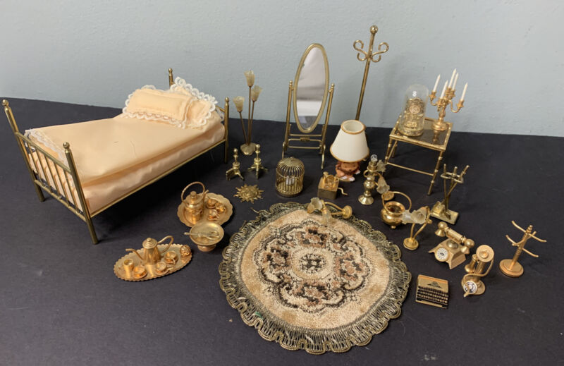 Title (ebay affiliate link): Vintage Dollhouse Miniature Bedroom Furniture And More Gold Tone Metal