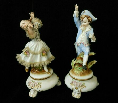 Antique Dresden Lace Porcelain Dancing Girl & Boy Figurines #6154