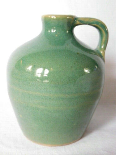 Vintage Pottery Jug, Green, Miniature 4 in. Crock, EXC.