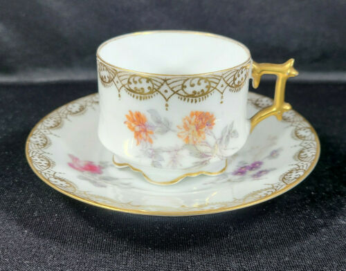 Antique L R L Limoges France Demitasse Teacup and Saucer 1891-1914