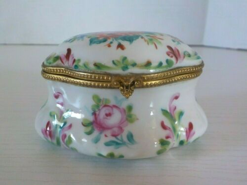 Antique French or German Porcelain Floral Dresser or Trinket Box