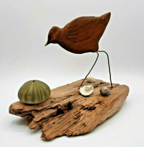 Title (ebay affiliate link): Vtg Maine Hand Carved Wood Shore Bird on Drift Hand Painted Seashells AS IS