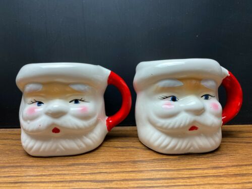 Lot of 2 Vintage Santa Face Cups Mugs Christmas Holiday Decor (2)