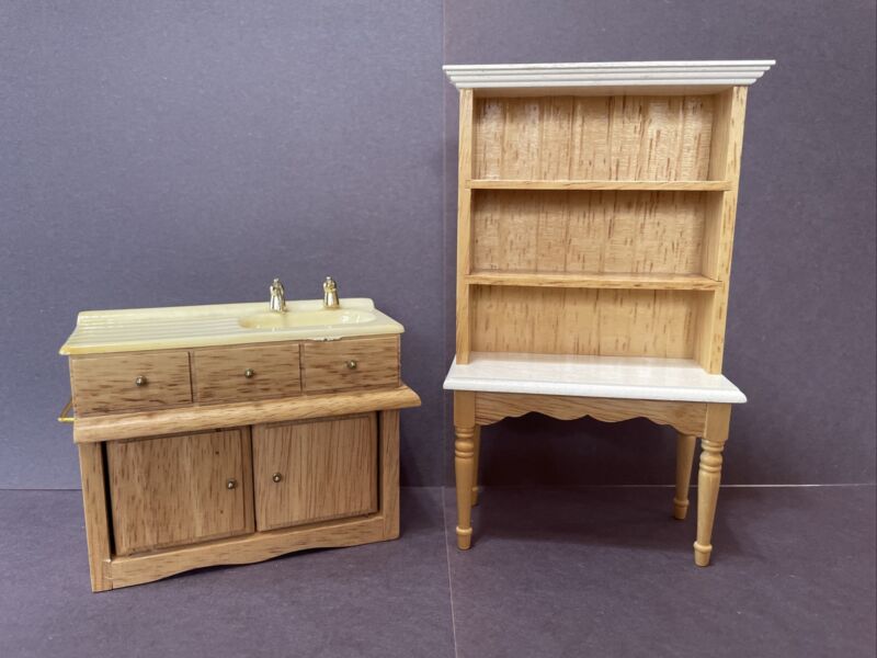 Title (ebay affiliate link): KITCHEN SINK UNIT Vintage Miniature Dollhouse Furniture Buffet Pantry Lot 2
