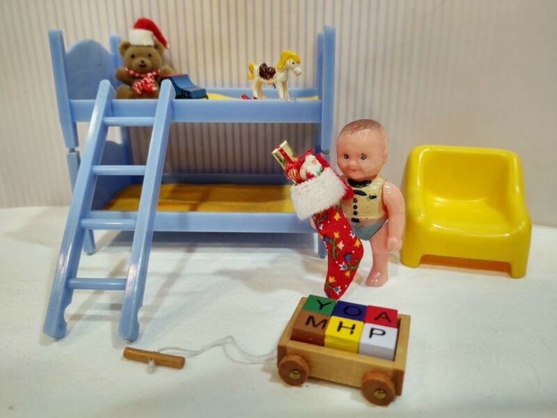 Title (ebay affiliate link): BEST BUNK BEDROOM w/ Renwal Doll Christmas Vintage Miniature Dollhouse Furniture