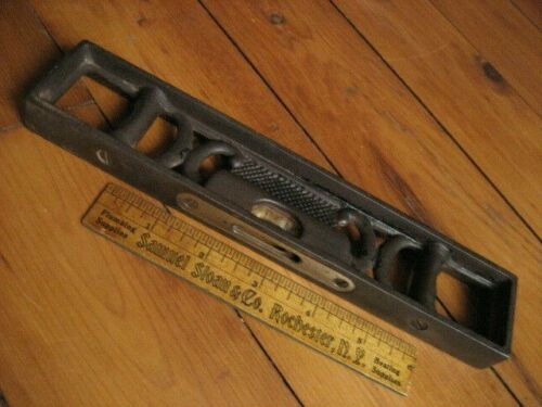 Vintage 9" Cast Iron L S S Starrett 3 Vial Machinist Level Tool Athol Mass USA